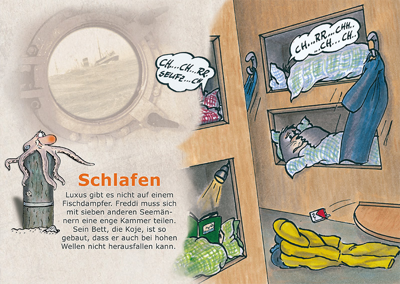 Die Comicbroschüre „Freddi an Bord eines Fischdampfers“ ist im Museum "Windstärke 10" in Cuxhaven zu erhalten.