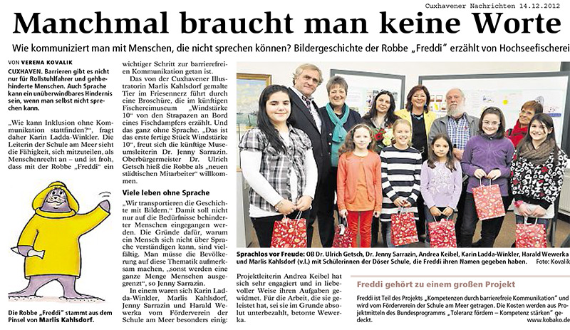 Vorbereitend hatte der Förderverein der Schule am Meer, die Kinder aus den 4. Klassen der Grundschule Döse, zu einem Comicworkshop mit Frau Dr. Sarrazin ( Windstärke 10/ Stadt Cuxhaven) und Illustratorin Frau Marlis Kahlsdorf eingeladen.