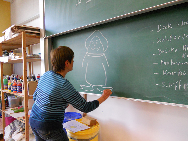 Die Kinder malten Bilder von einem Fischdampfer und anschließend wurde den Kindern die neue Comicfigur für die Broschüre vorgestellt.