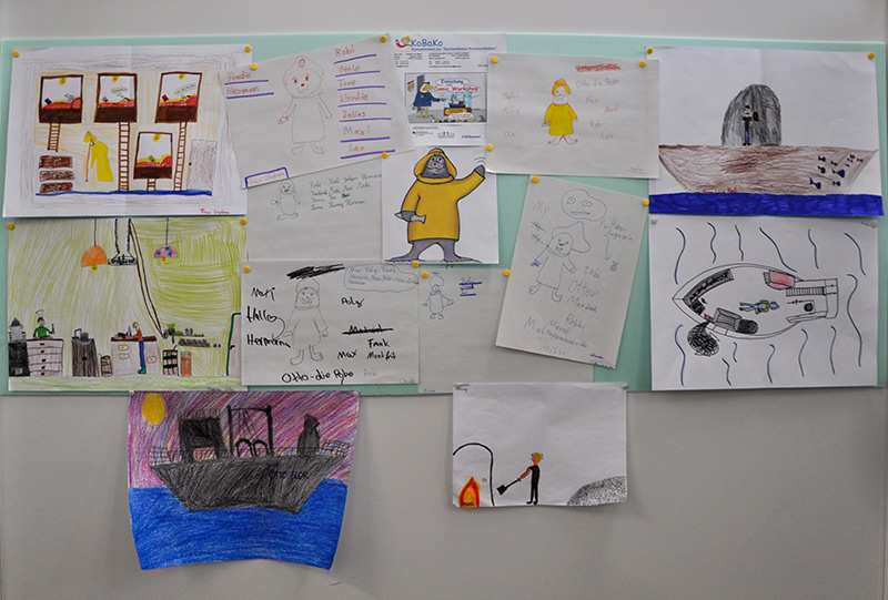 Präsentation Bilder, die während des Comicworkshops entstandenen sind und der Broschüre "Freddy an Bord eines Fischdampfers"