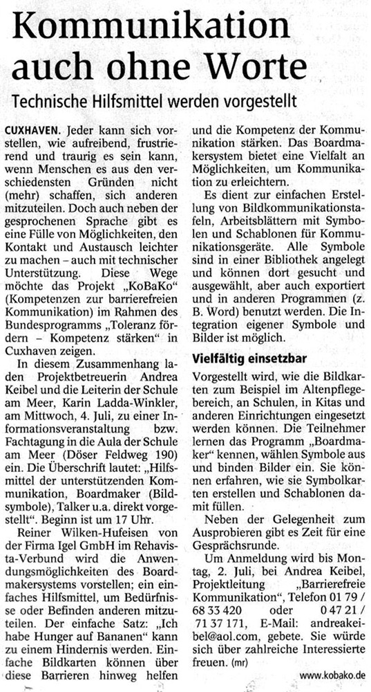In dem Einladungsschreiben war soviel Information, dass die angeschriebenen Institutionen, selbst wenn sie nicht an dem Vortrag teilgenommen haben, zumindest über das Boardmakersystem und die Möglichkeiten eine Vorinformation haben und bei Bedarf darauf zurückgreifen können.