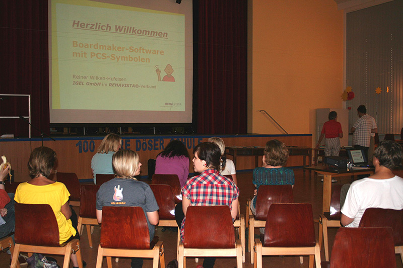 Am 04.07.12 fand der Vortrag über das Boardmakersystem von Herrn Reiner Wilken-Hufeisen von der Firma Igel GmbH im Rehavista-Verbund in der Schule am Meer statt.