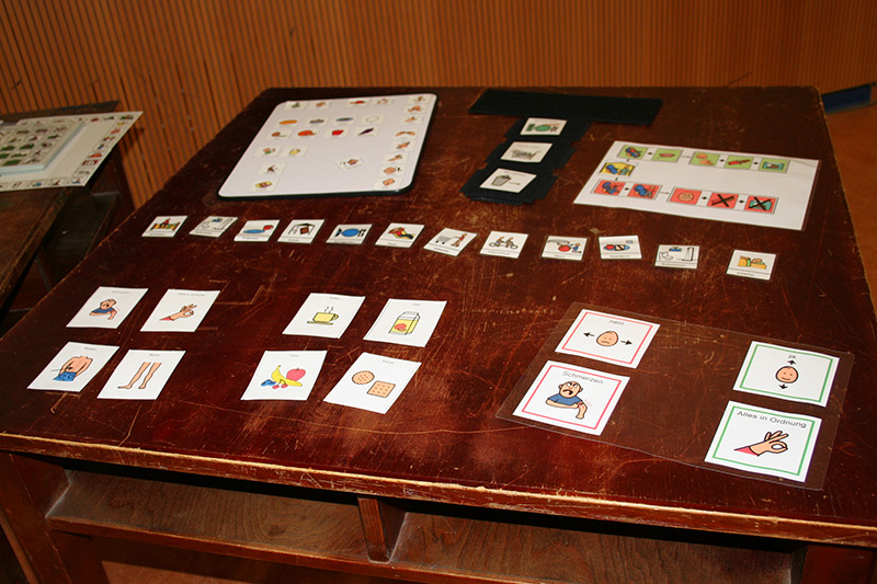 In der unterstützenden Kommunikation gibt es u.a. das Boardmakersystem. Es ist ein gut strukturiertes System aus Bildkarten, das weitreichende Möglichkeiten bietet, wenn die Sprache zur Kommunikation nicht ausreichend anwendbar ist.